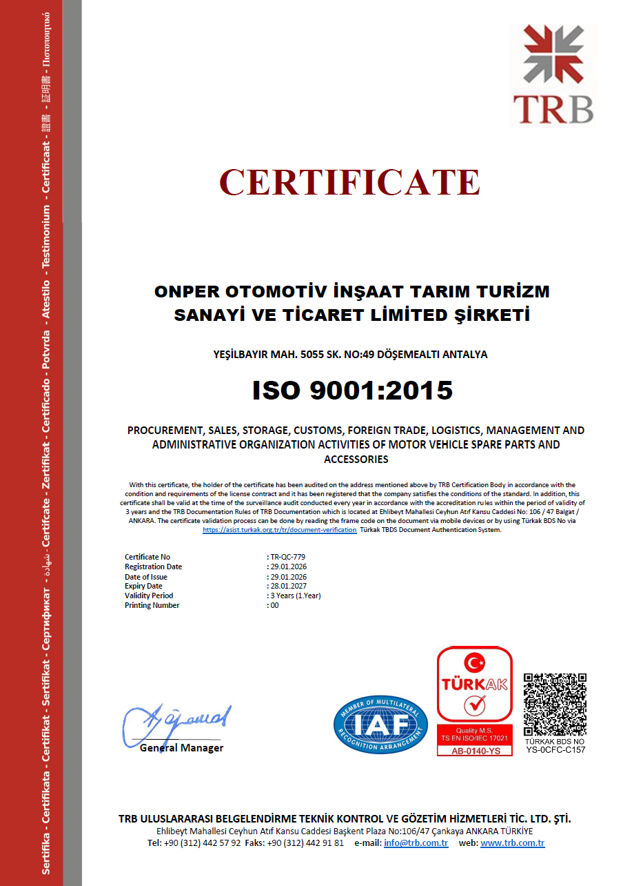 Компания Onper Otomotiv в каждом этапе своей деятельности руководствуется принципами качества, надежности и устойчивого развития.